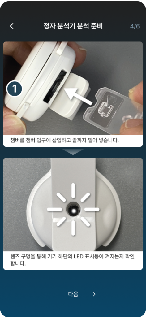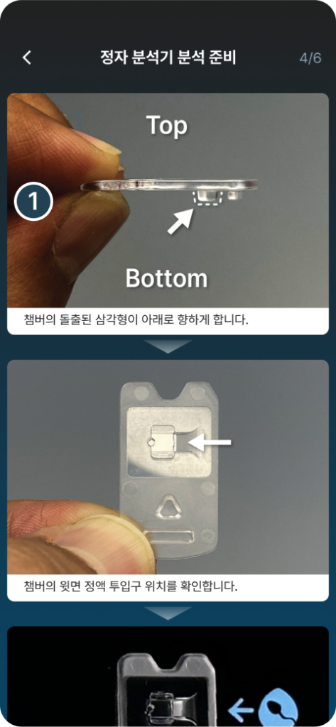 - 정자 분석기에 챔버를 삽입하는 방법에 대한 설명입니다.