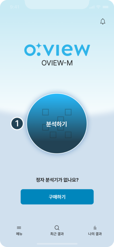 - 위치 가이드를 사용해 스마트폰을 정자 분석기 위에 덮는 방식 입니다. 접이식 화면의 스마트폰이나 후면 카메라가 돌출돼 클립 사용이 어려운 스마트폰에 사용합니다.