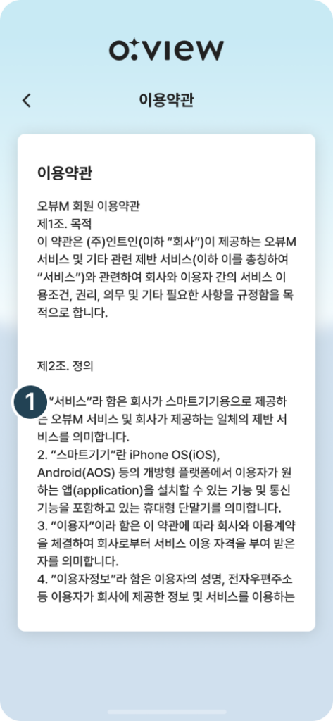 - 이용약관 및 개인정보 정책의 상세 내용을 보여줍니다.